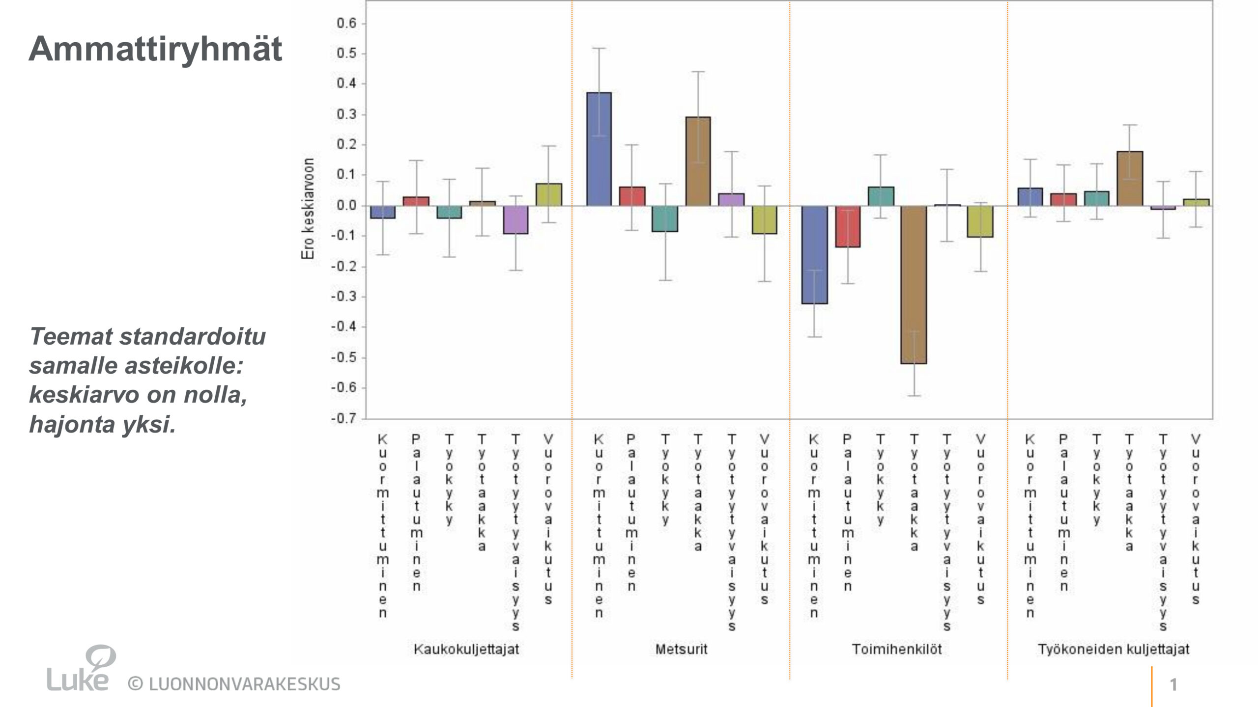 - 1Kallioniemi, M., Kaseva, J., Peltola, A., Anttila, A. & Katajamäki, E. 2020. Työhyvinvointi puuhuoltoketjussa. Luonnonvara- ja biotalouden tutkimus 99/2020: 88 s. Saatavilla: https://jukuri.luke.fi/items/19274ace-9092-4fed-91de-869889c2f5c7
